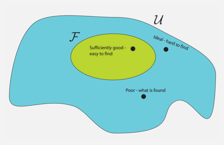 In such unforgiving terrain, it becomes clear why searching U, even via sophisticated approximation algorithms, tends to yield inadequate solutions.