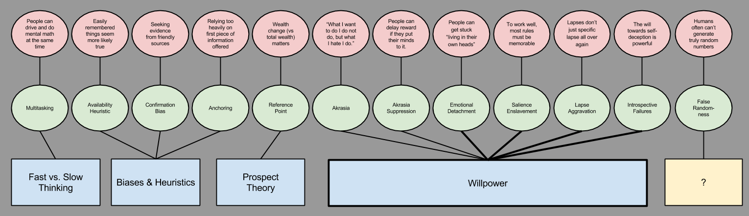 - Salience enslavement: Personal rules tend to be all-or-nothing, erring on the side of memorability even at the cost of reasonableness.