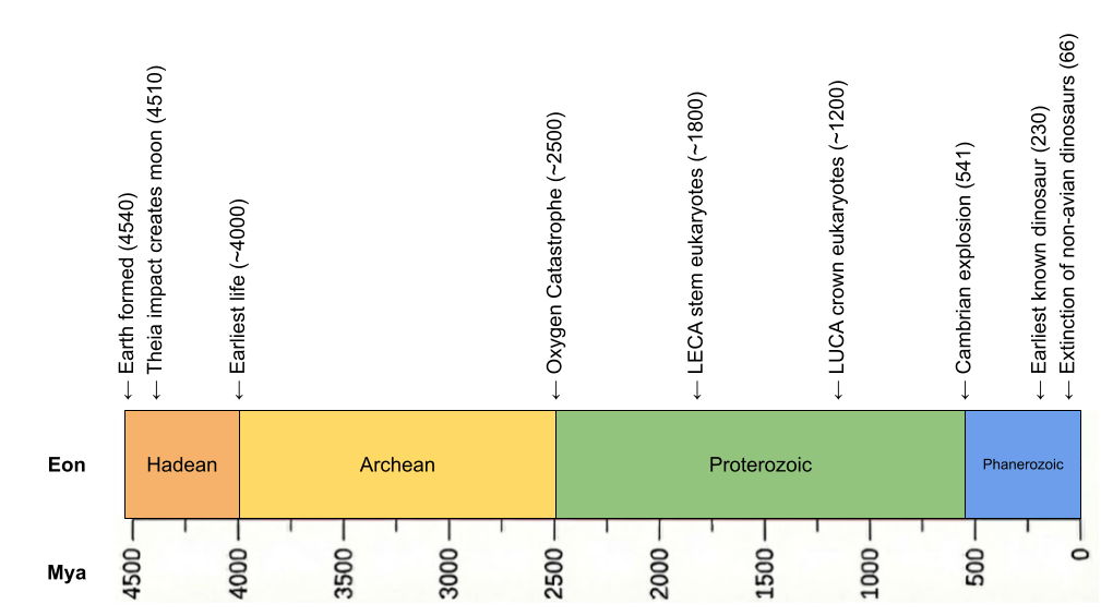 The history of life constrains our search. Two domains of simple life (prokaryotes) emerged in the Hadean: bacteria and archaea. But eukaryotes (complex life) emerged much later, as a result of endosymbiosis between the two families.