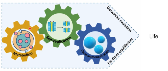 Modern metabolism and self-replication does not occur in an undifferentiated “primordial soup”. They occur inside impermeable membranes made of phospholipids.