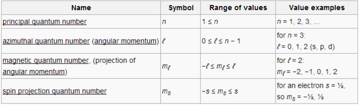 - azimuthal. This corresponds to the orbital version of angular momentum (e.g., the Earth rotating around the Sun). These numbers correspond to the orbitals of quantum chemistry (0, 1, 2, 3, 4, …) ⇔ (s, p, d, f, g, …); which helps explain the orbital organization of the periodic table.