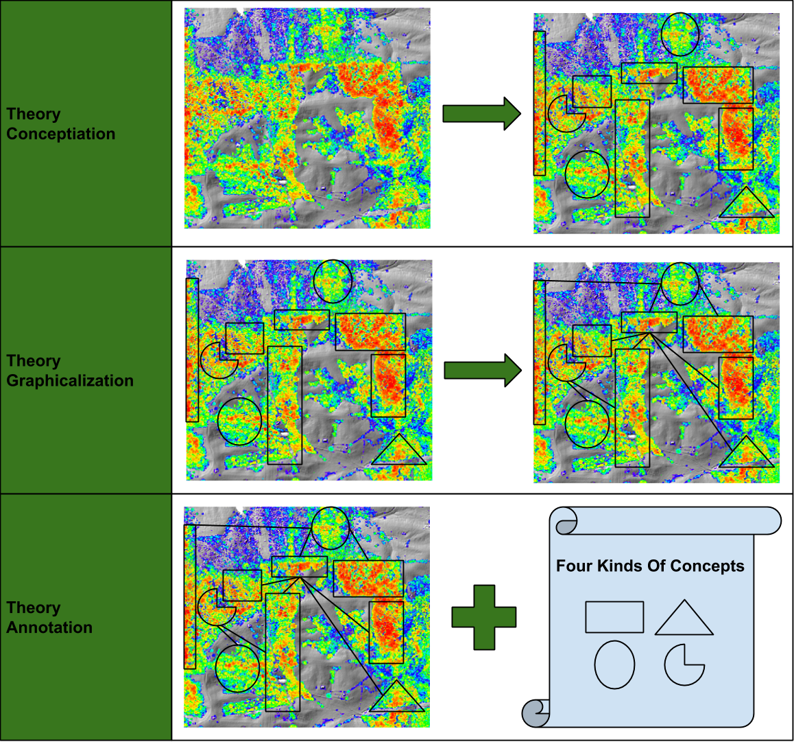 The first phase of my lens-dependent theorybuilding triad I call conceptiation: the art of carving concepts out of a rich dataset. Such carving must be heavily dependent on descriptive dimensions: quantifiable ways that an entity may differ from one another.